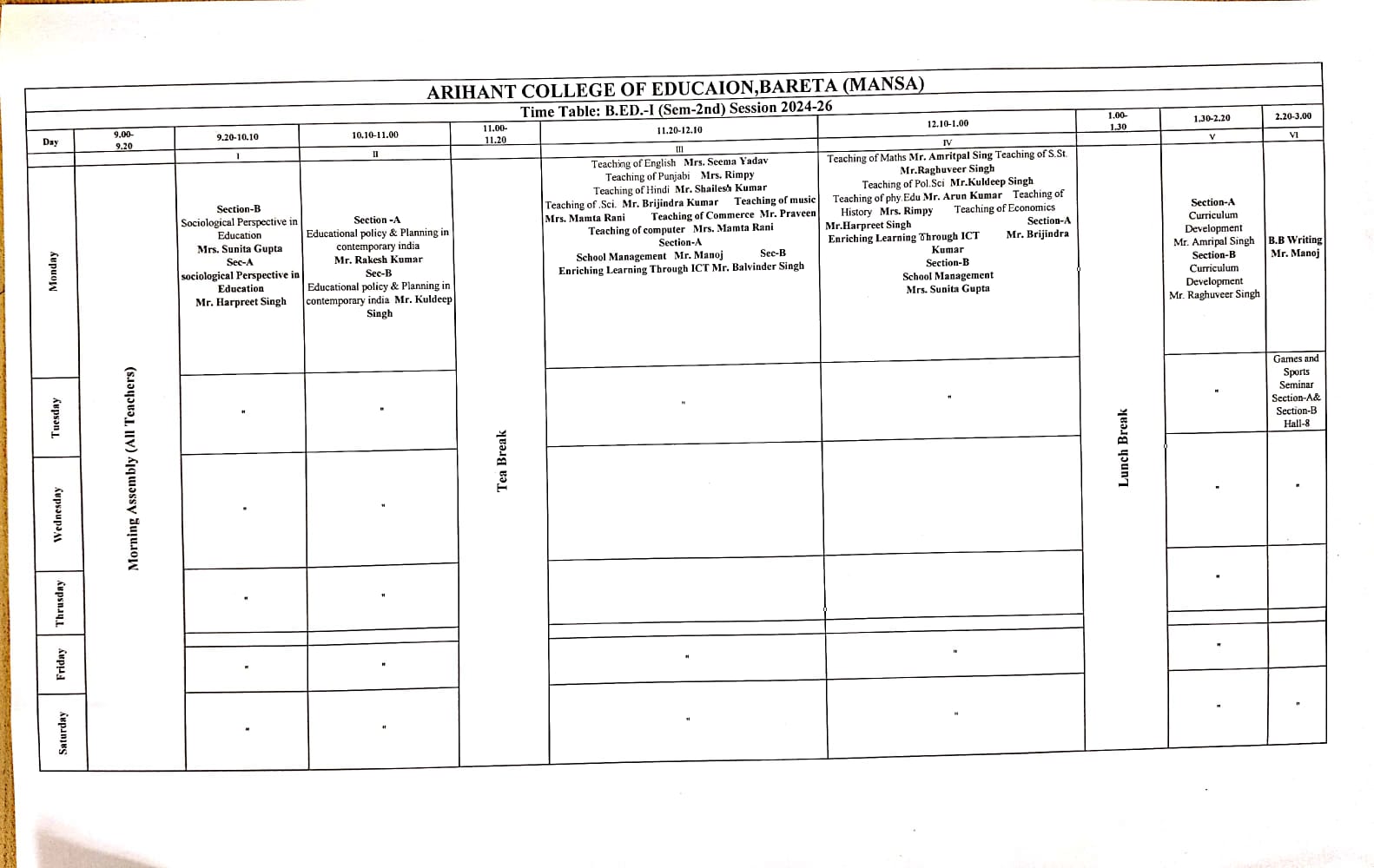 - Whether The Institution Has Access of Central Library of The University and Other Departments : No